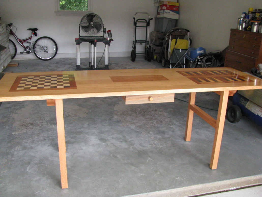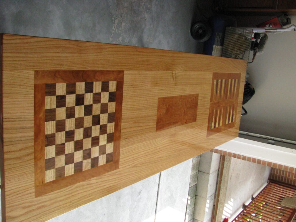 This is a custom made Cribbage, Chess, and Bag Gammon table.