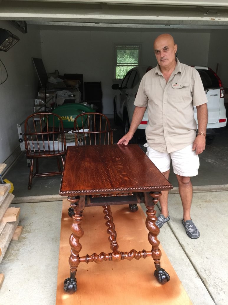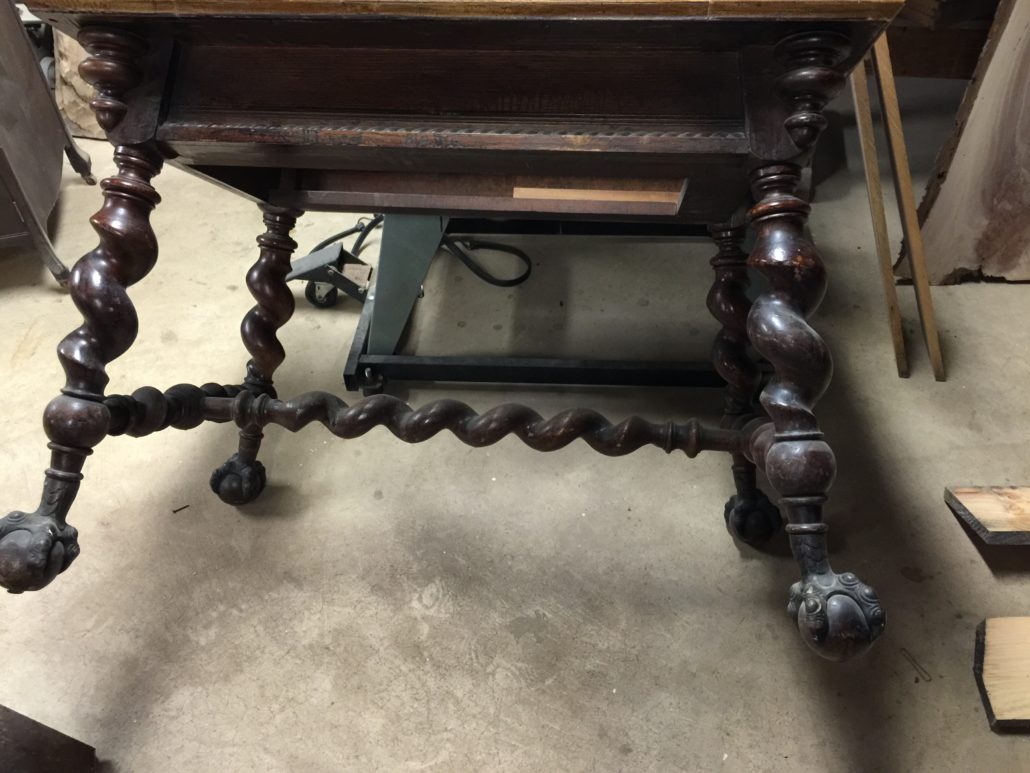 This is the restoration of a Charles I table from the 1600’s.